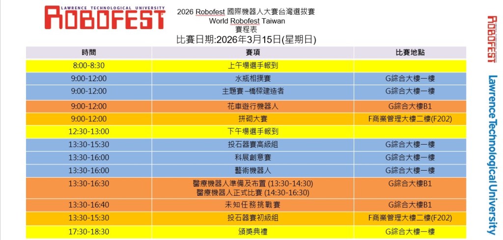 2026Robofest國際機器人大賽台灣選拔賽賽程表